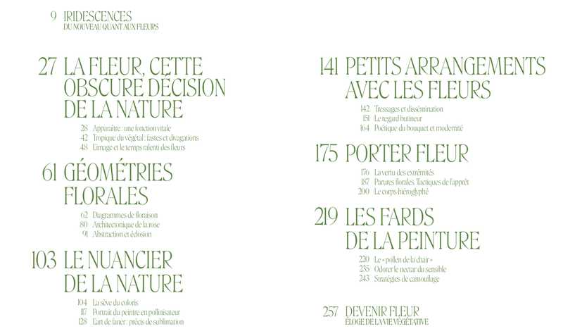À la croisée de la botanique, de l’esthétique et de l’histoire de l’art, ce livre présenté sous coffret ouvre le concept de fleur et en produit un paradigme élargi. Clélia Nau nous invite à regarder la fleur non plus seulement comme un moment de la chaîne végétale – celui avant le fruit –, ni uniquement pour ce qu’elle représente, mais comme un être dont l’apparence, en soi énigmatique, exprime l’obscur mouvement de la vie. Elle nous montre comment le peintre, mieux que personne, a su capter ce mystère, et nous livre un portrait de l’artiste en butineur, en pollinisateur de surfaces, en orchestrateur d’arrangements floraux qui viendront bousculer la composition même des tableaux à l’époque moderne. En rapprochant les tactiques de la fleur de celles du peintre, l’auteure nous livre une passionnante histoire de l’art, sous l’écoute du vivant. En ces temps d’inquiétude et de remise en question, ce livre vient à point nommé pour éclairer les liens entre les différents règnes : en faisant dialoguer, malgré la distance, la cosmétique florale et les parures du corps humain, il développe une nouvelle anthropologie de la représentation.