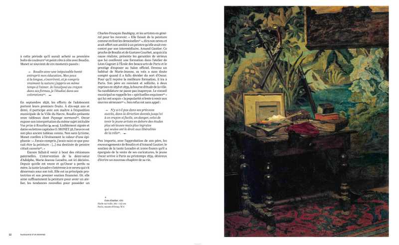 C’est tout ce parcours que Marianne Mathieu dessine en s’appuyant sur une iconographie riche comprenant les « incontournables » (Impression, soleil levant, La Pie, etc.), mais aussi des œuvres moins connues, parfois surprenantes. Elle nous fait (re)découvrir le peintre, l'homme dans sa simplicité et ses vicissitudes quotidiennes, animé de la volonté d'aller toujours plus en avant jusqu'à supprimer les lignes, jusqu'à ce que l'eau devienne l'univers et que la peinture exprime un tout indicible autrement.
